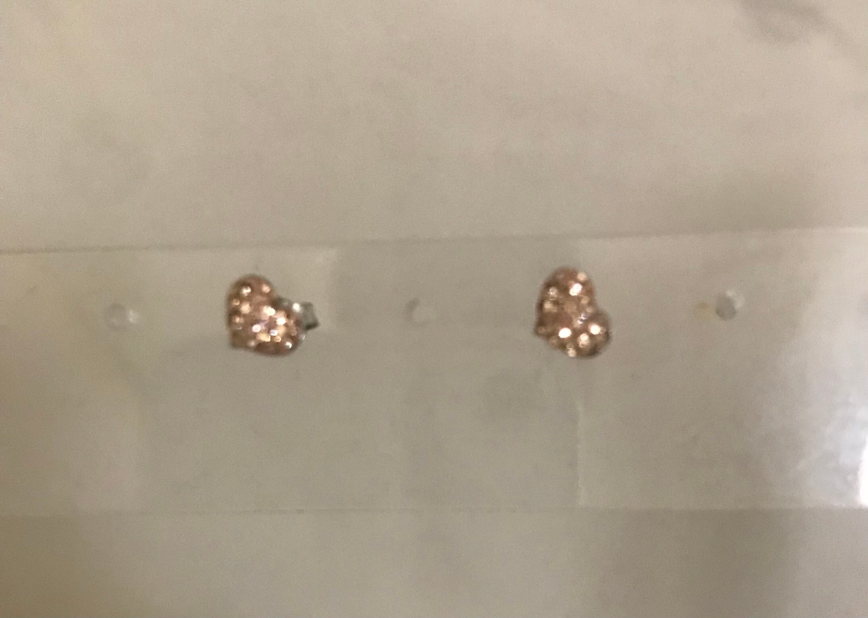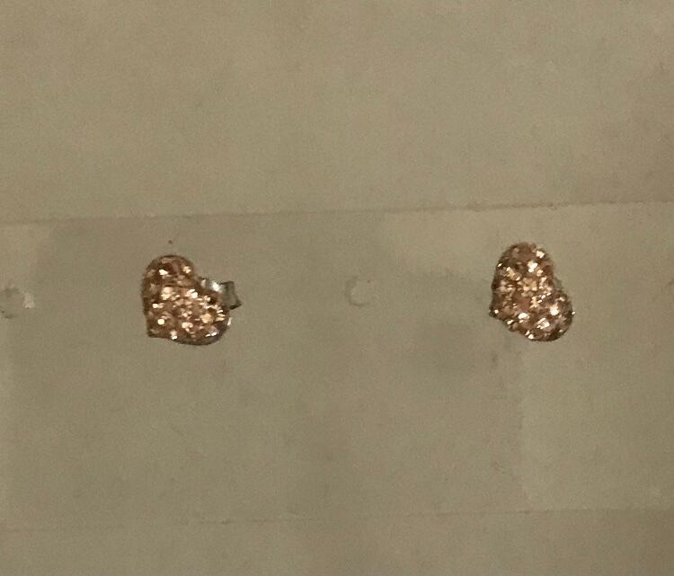 ピンクと黒のラインストーンの男の子の925シルバーハートイヤリング