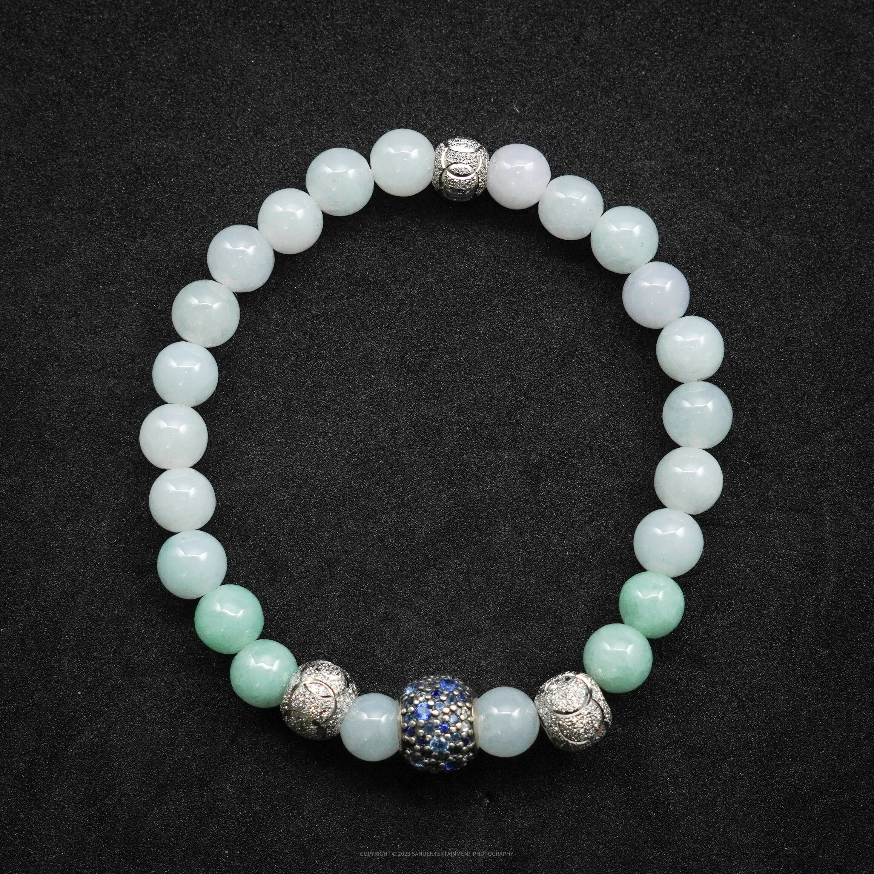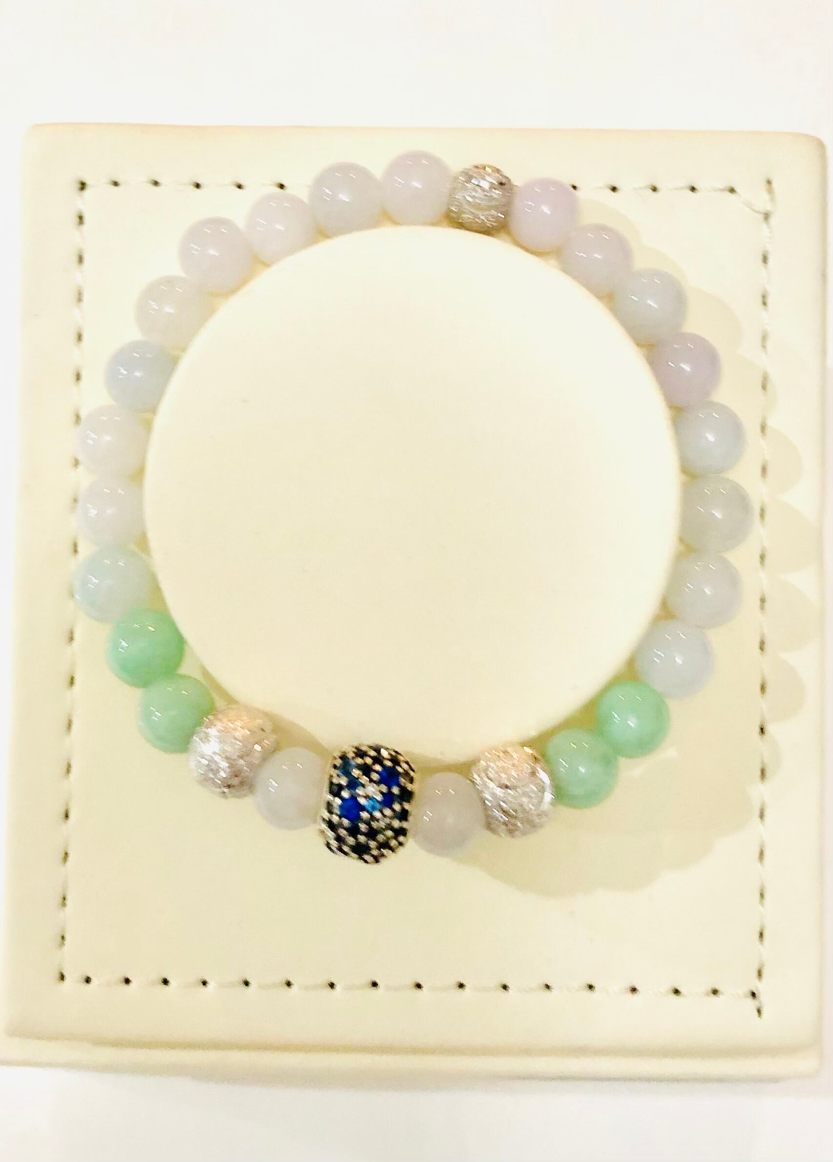 J ADEーvivid elegant green, 鮮やかな上品なグリーンナイロンエラスティック付きジュエルブレスレット