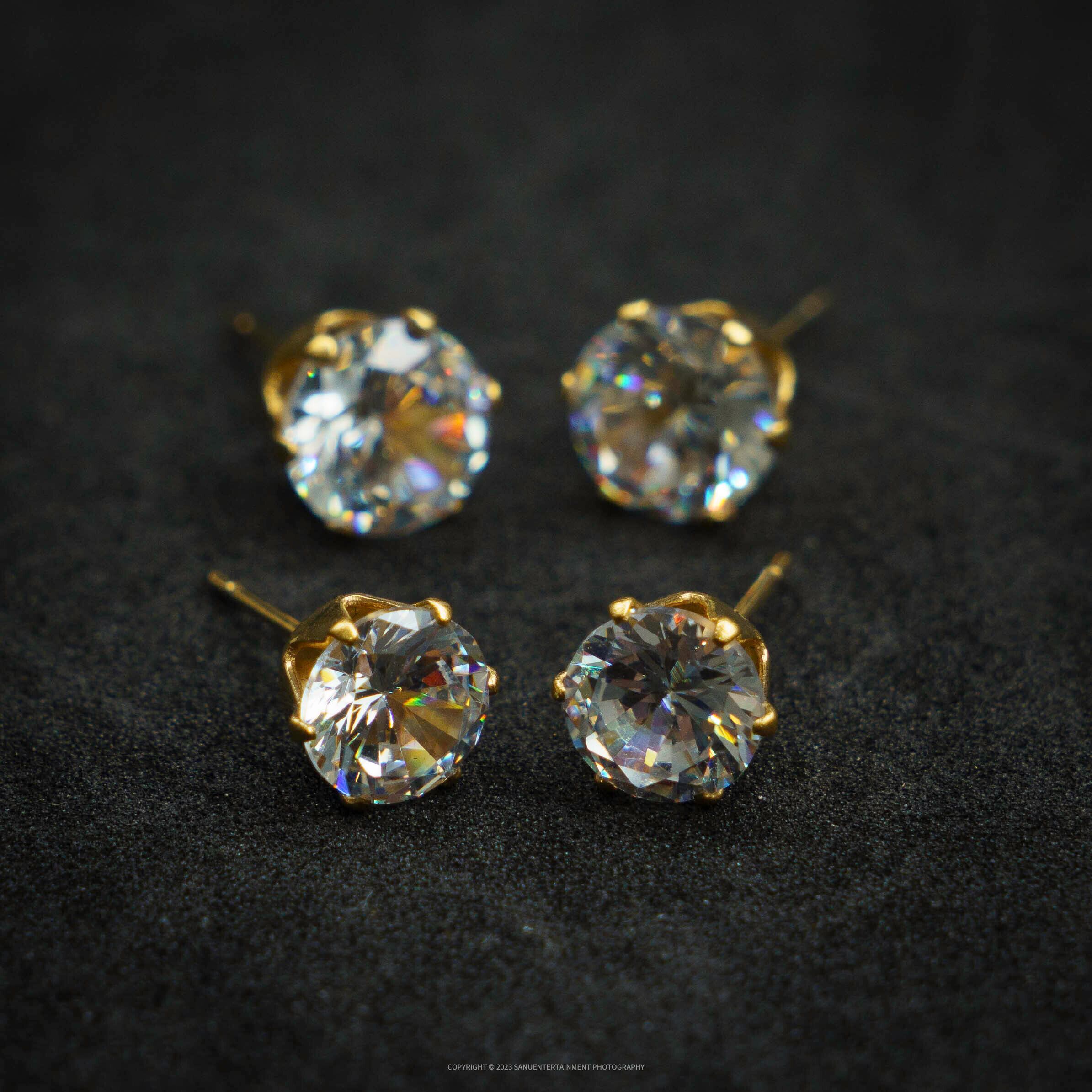ホワイトストーンスチールイヤリング、アンチストレススチールソリティアイヤリング、不運からの保護。